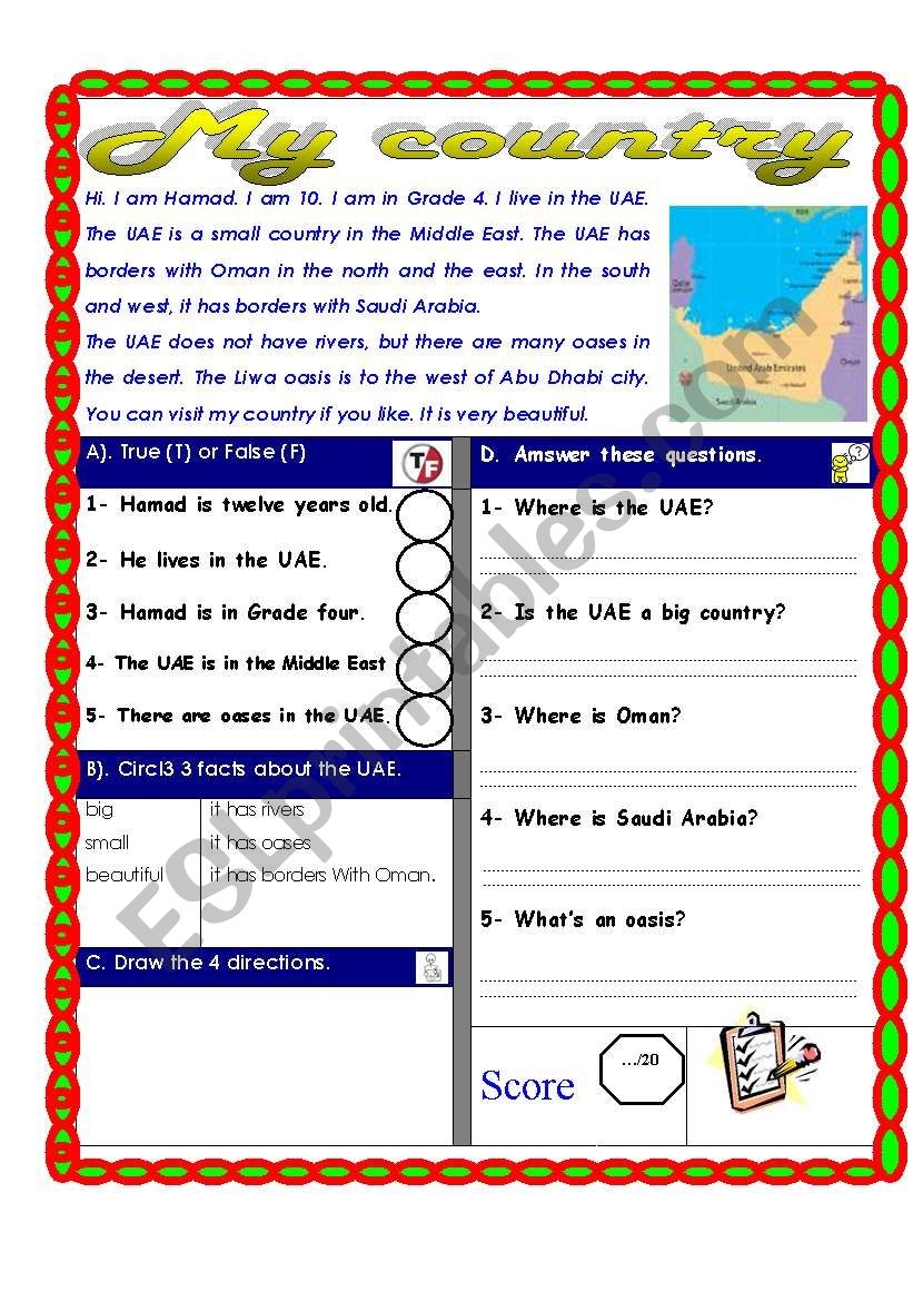 Reading Comprehension Test Theme The Four Directions ESL Worksheet By Shmiskeen