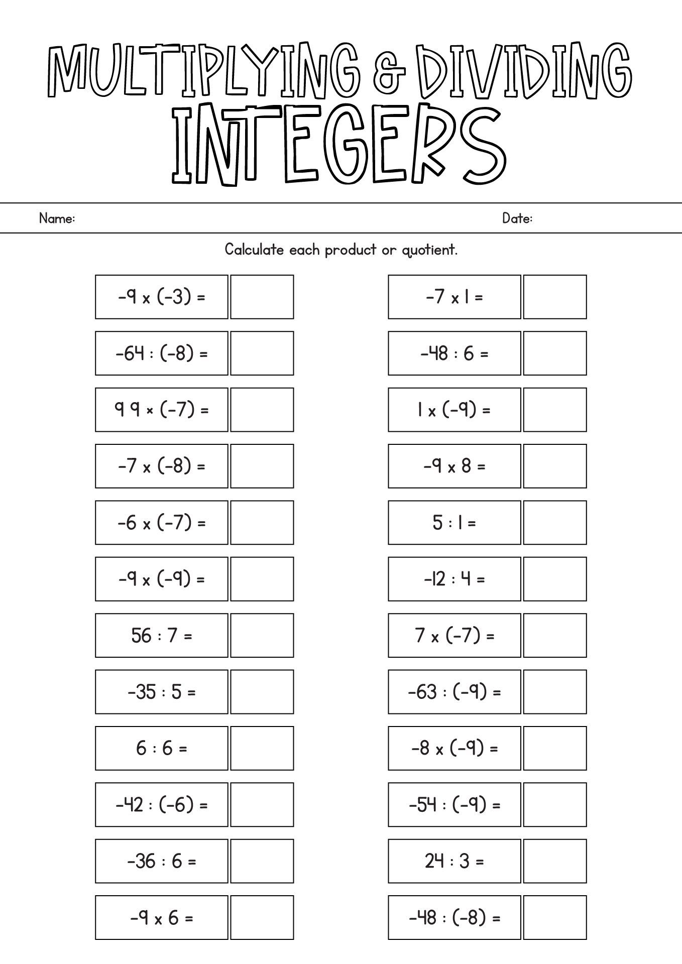 With these worksheets, your child can practice adding, subtracting, multiplying, and dividing integers in a fun and engaging way. They are designed to be easy to understand and include helpful explanations and examples to guide your child through the problems.