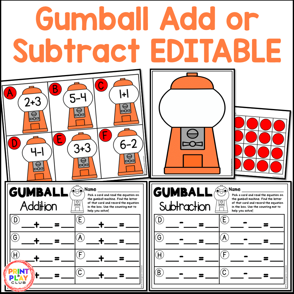 Gumball Addition And Subtraction Worksheets Pdf 123 Homeschool 4 Me